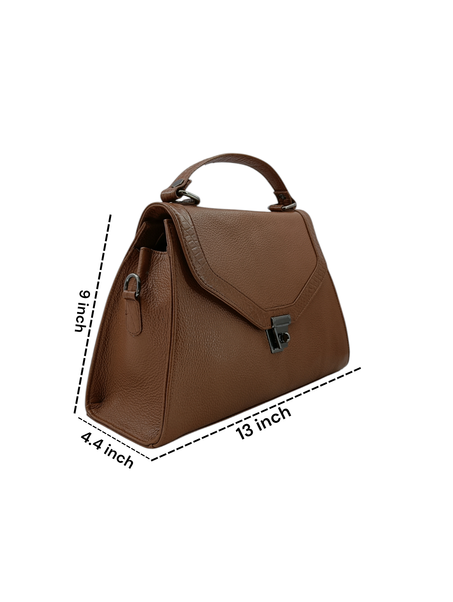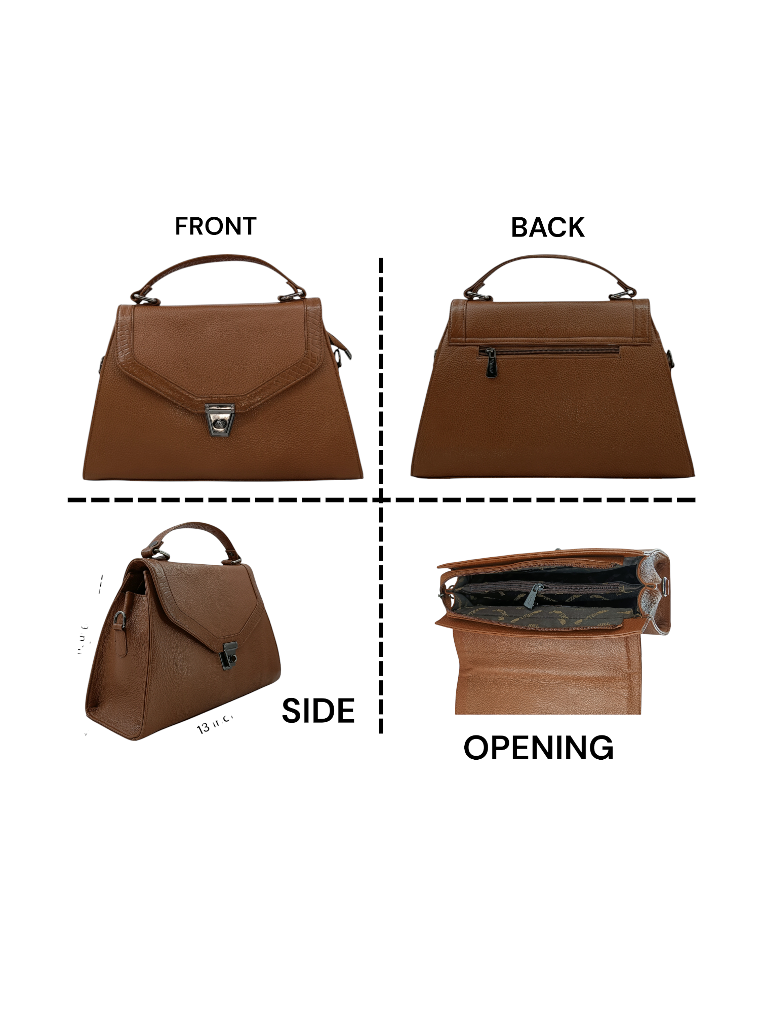 The Executive-Style Genuine Leather Handbag is a stunning blend of craftsmanship and utility. This executive-style handbag, made from genuine leather, exudes sophistication with its natural grain finish in a warm tan color. Whether you’re heading to a business meeting or a casual outing, this handbag is designed to complement your look effortlessly.