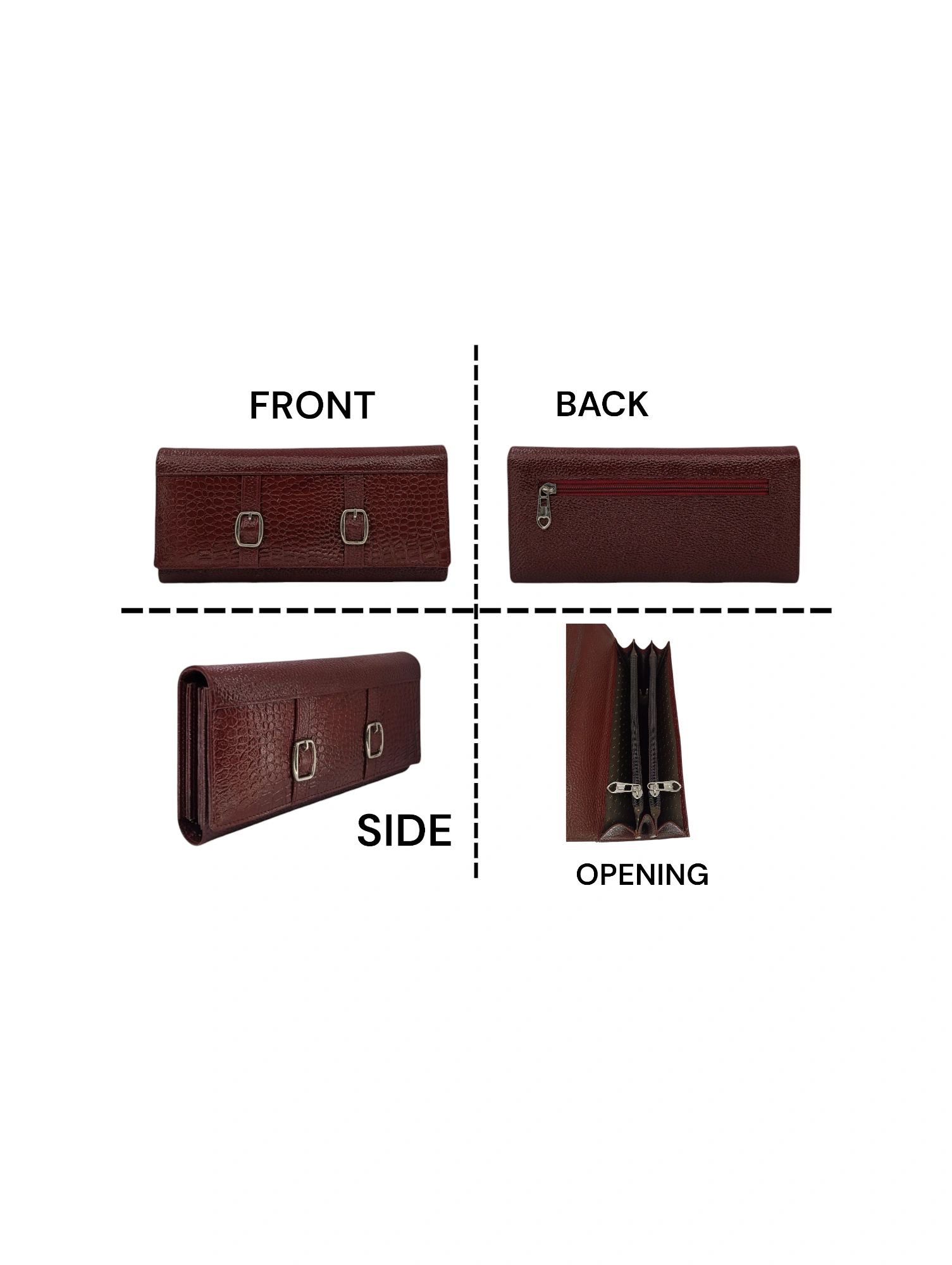With compact dimensions (H-4 x L-9 x B-1.2 inches), this wallet is designed to fit seamlessly into handbags or pockets while offering ample space for your essentials. It features a dedicated phone pocket, making your mobile easily accessible and secure. The wallet’s spacious main compartment is ideal for daily necessities like keys and makeup, with an additional section to neatly organize currency notes.