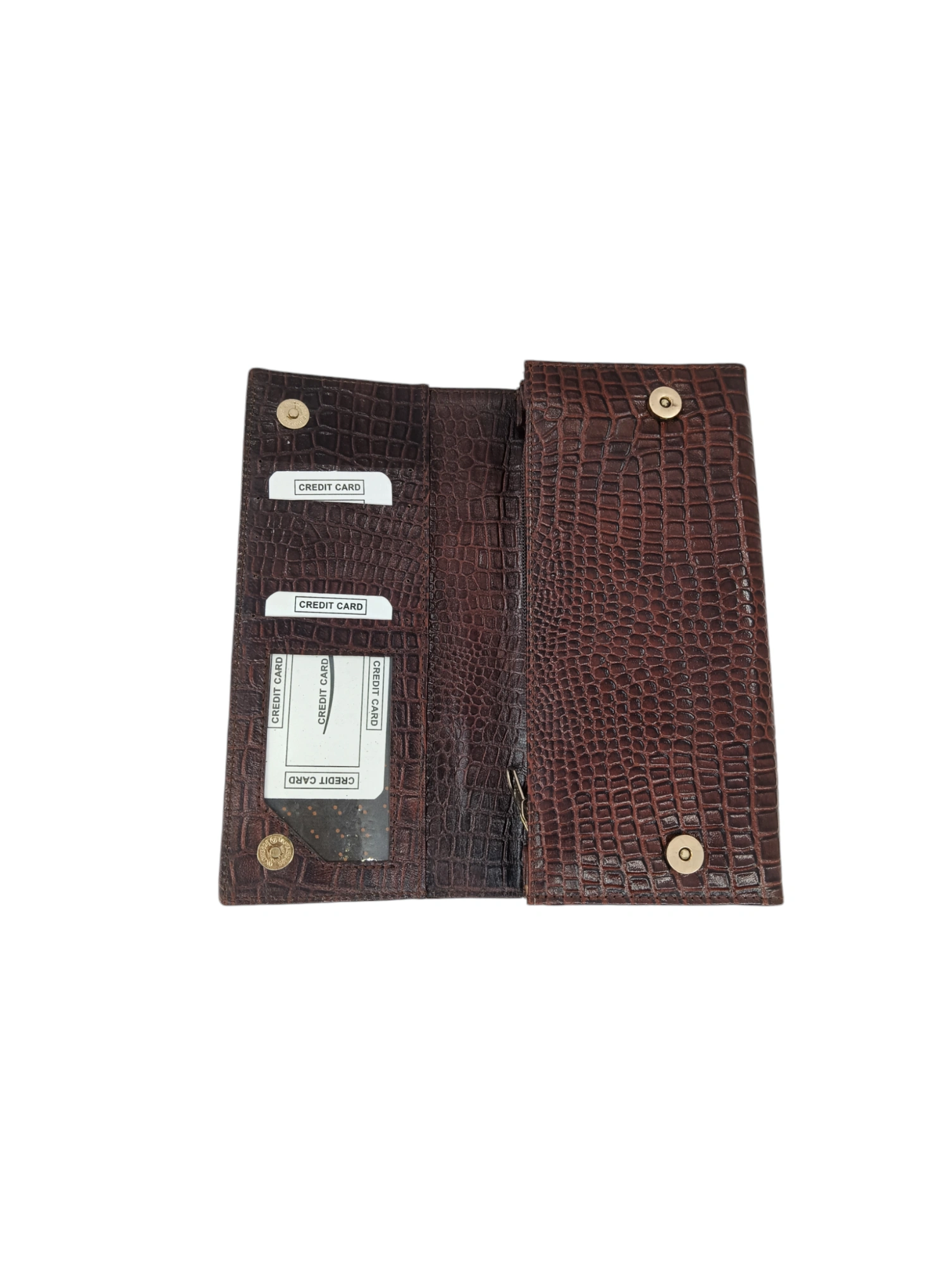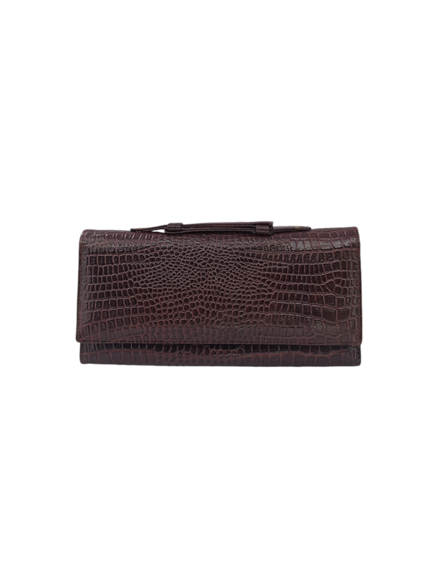 The wallet is designed with functionality and elegance in mind, offering a sleek, organized profile that pairs perfectly with any handbag or as a standalone clutch.