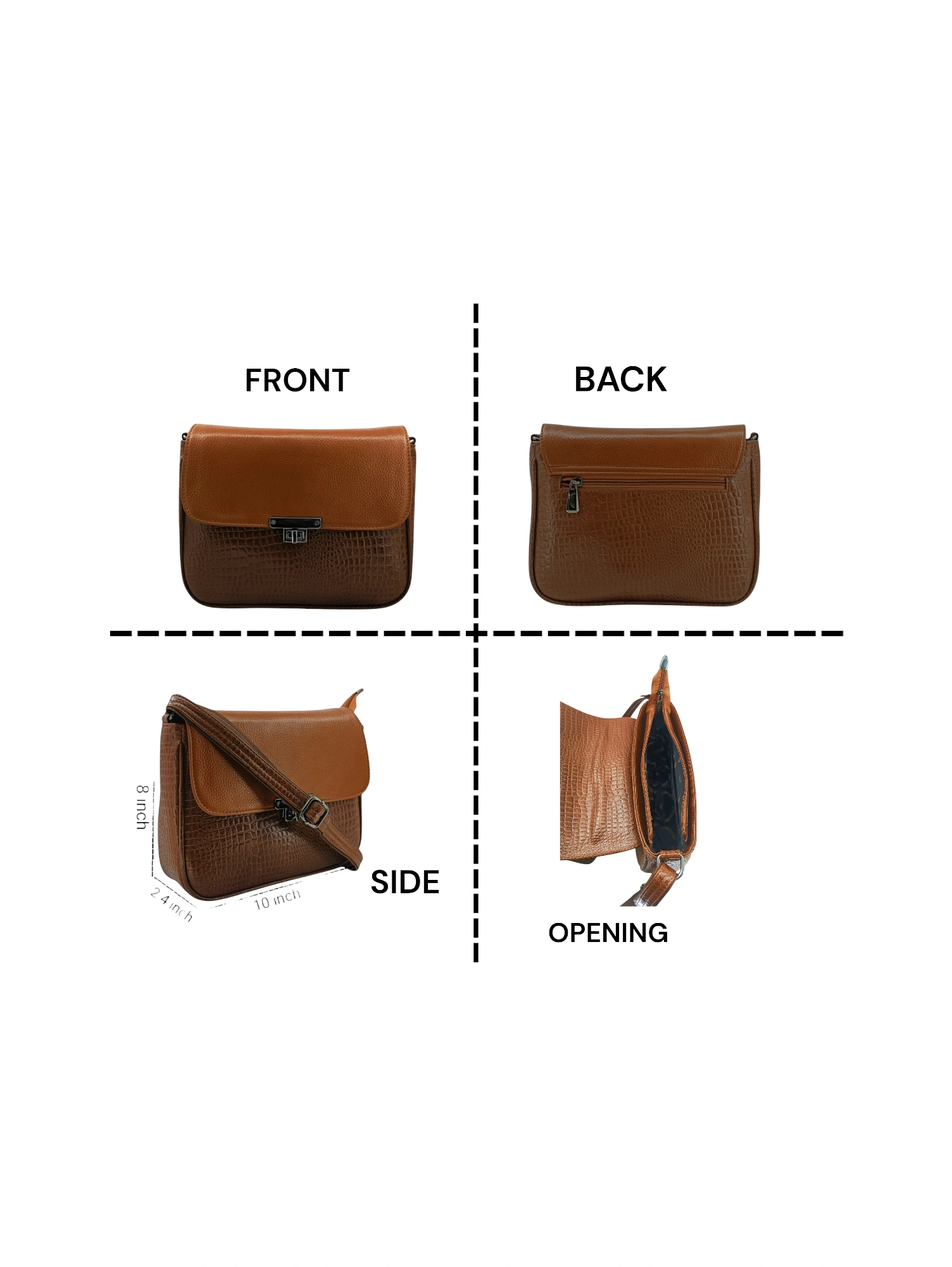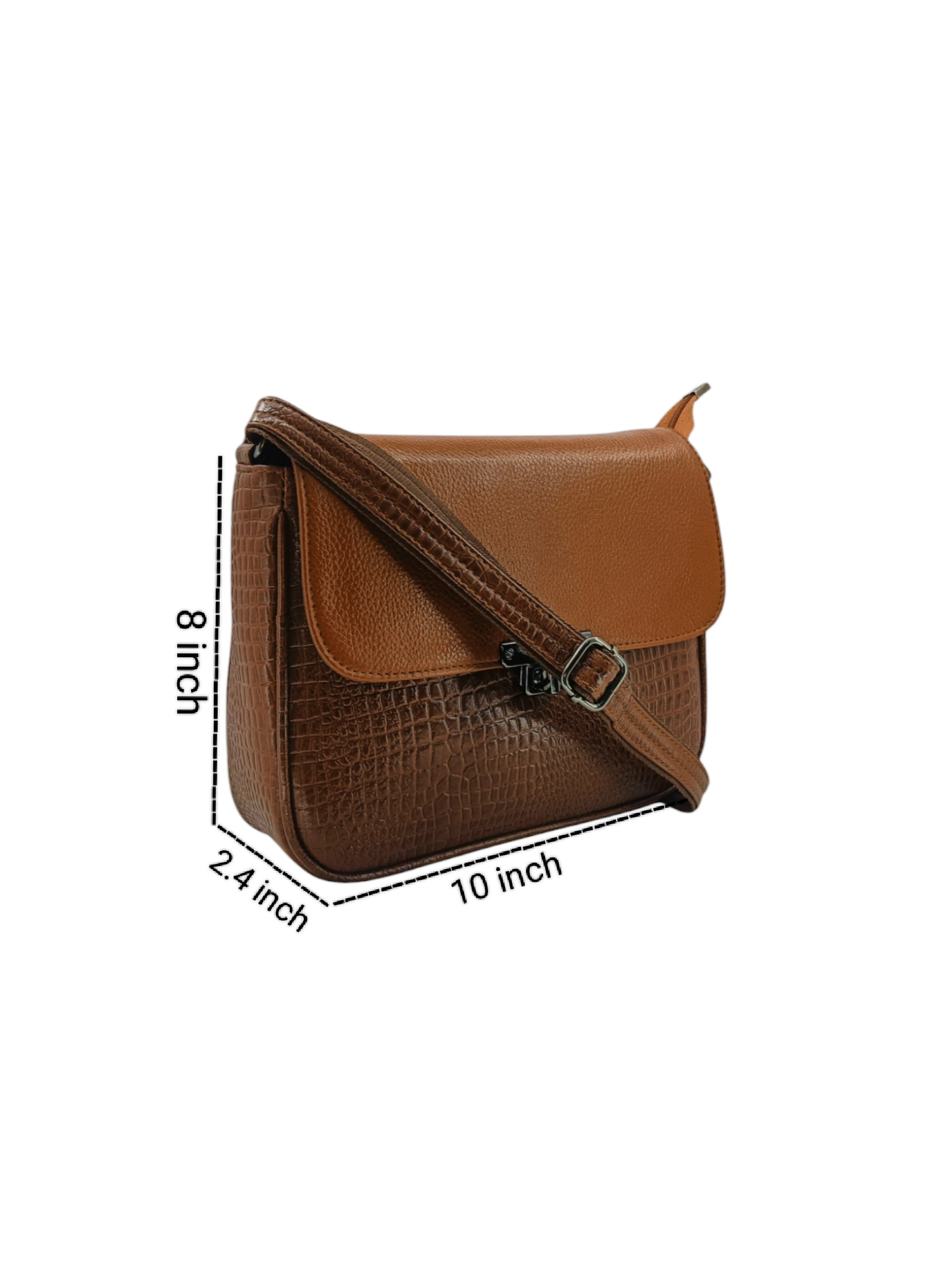 The Sling Leather Bag with Flap and Zipper Closure is the perfect combination of style and functionality, designed for those who value quality and elegance. With a 2-liter capacity and dimensions of H-8 x L-10 x B-2.4 inches, it offers a compact yet efficient design that fits your daily essentials effortlessly.