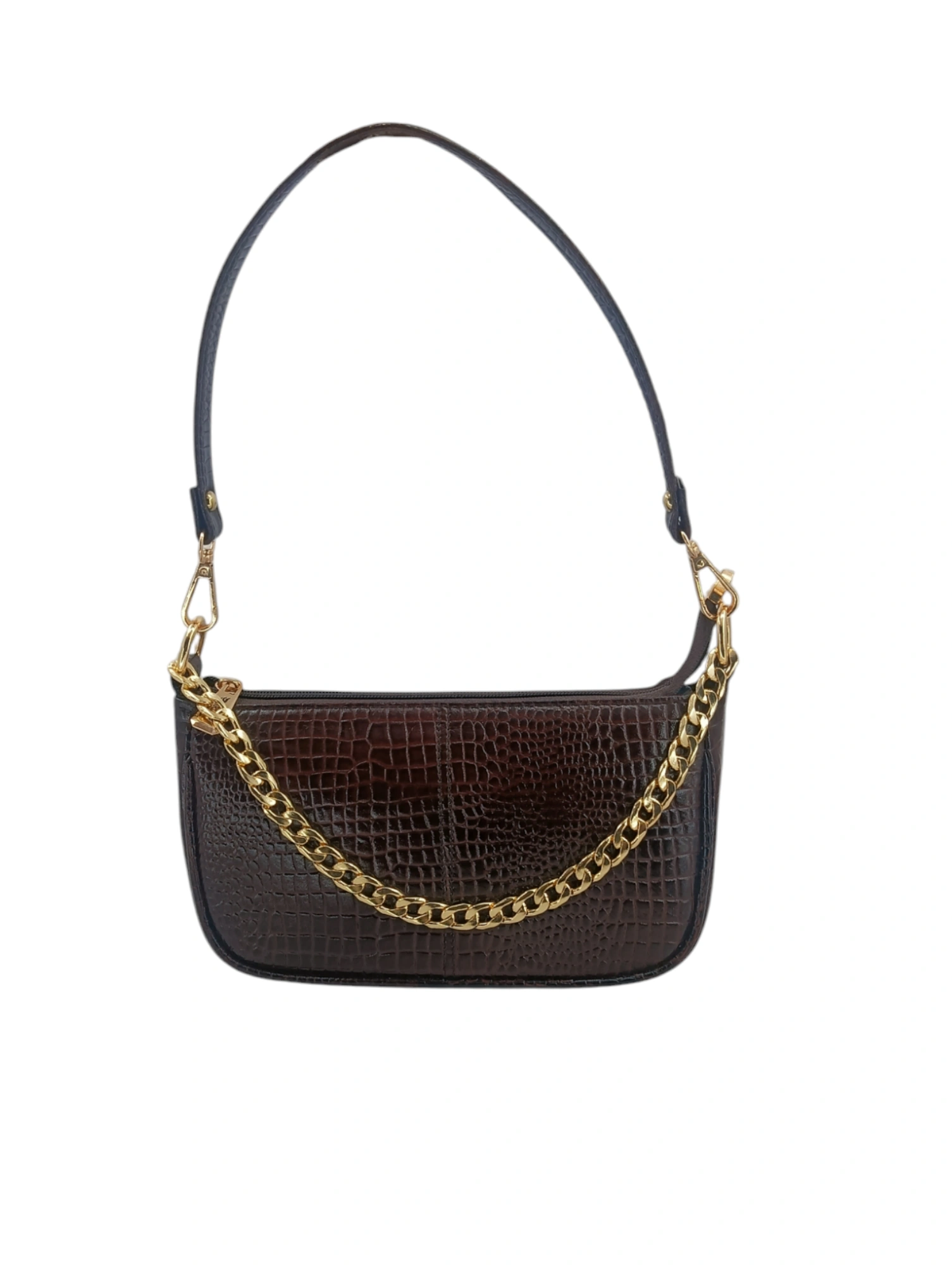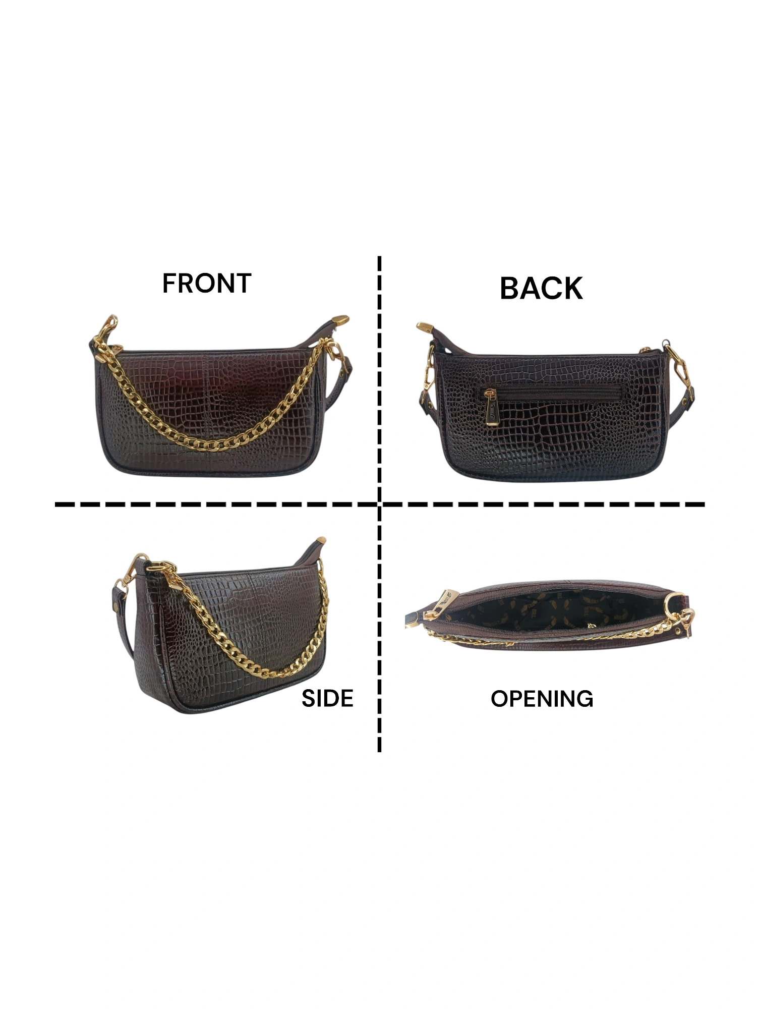 - Features a flap and zipper closure for added security and elegance.